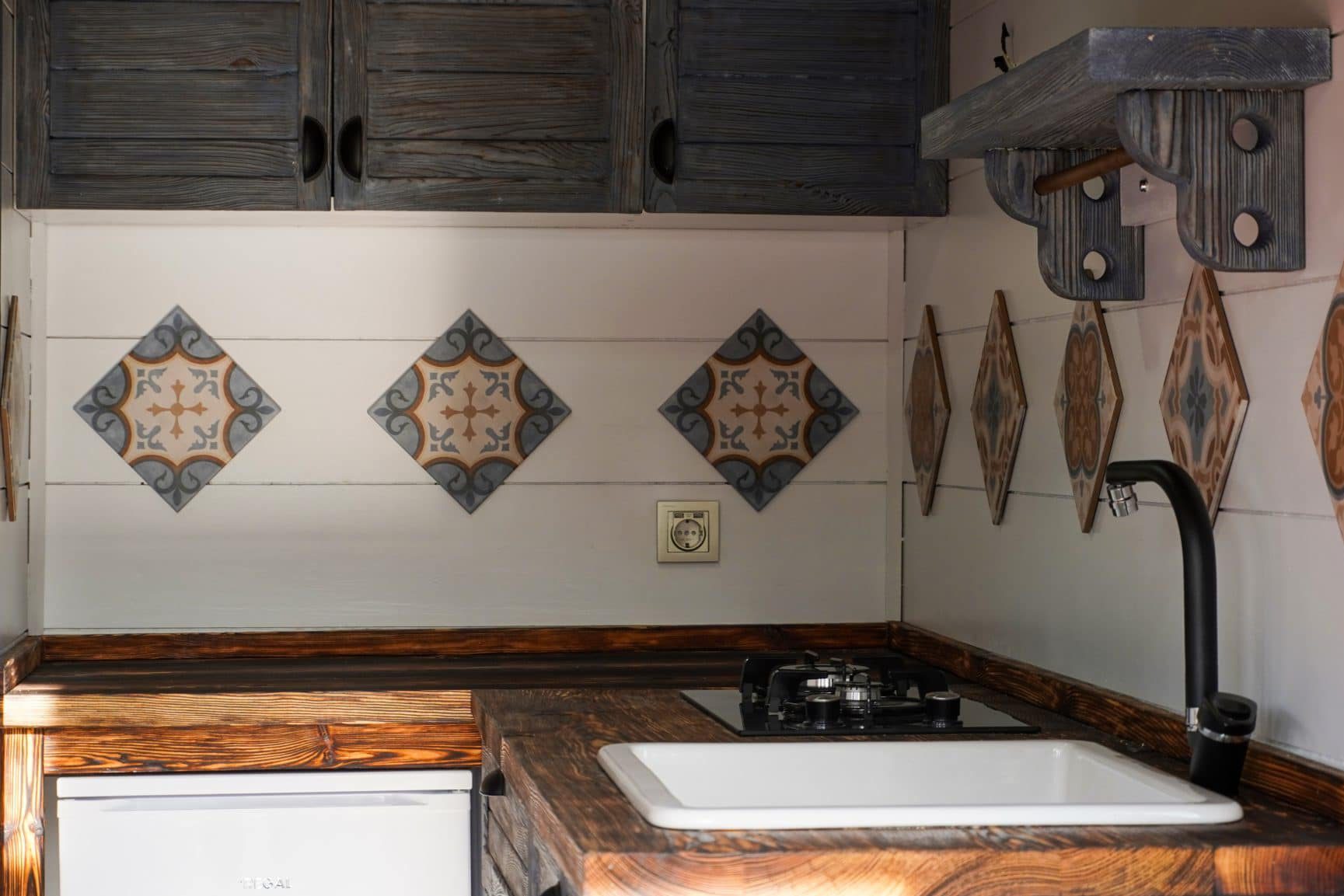- Ground Floor: Features a mini kitchen, sink, bathroom-WC, and a cozy sitting area.